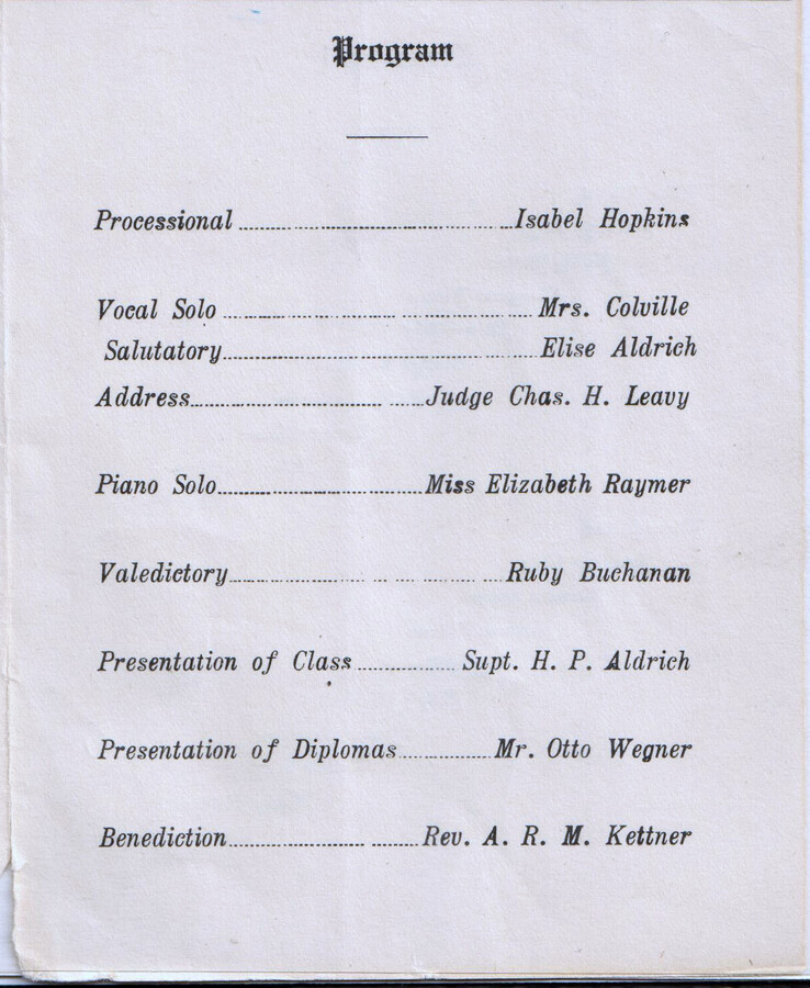 1933 commencement program. (Photo held by the Reardan Memorial Library.)