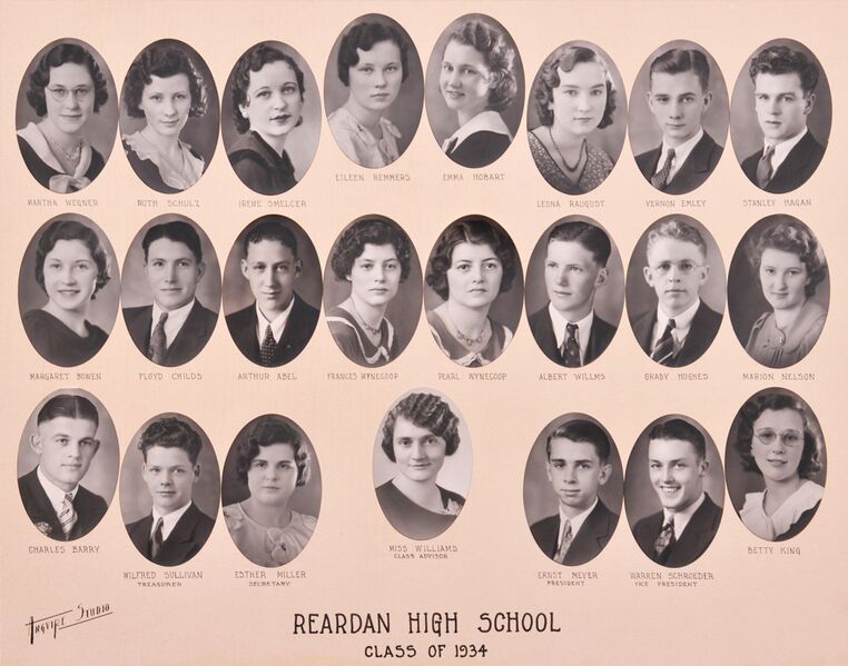Class composite for 1934. (Photo held by Reardan High School and harvested off of their website).