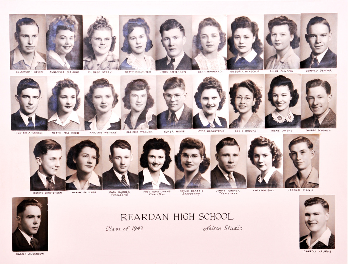 Class composite for 1943. (Photo held by Reardan High School and harvested off of their website).