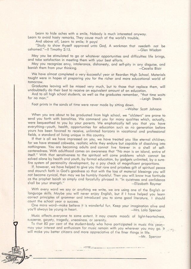 We have almost completed a very successful year at Reardan High School. Materials taught were in hopes of preparing you for the richer and more educational world of tomorrow.