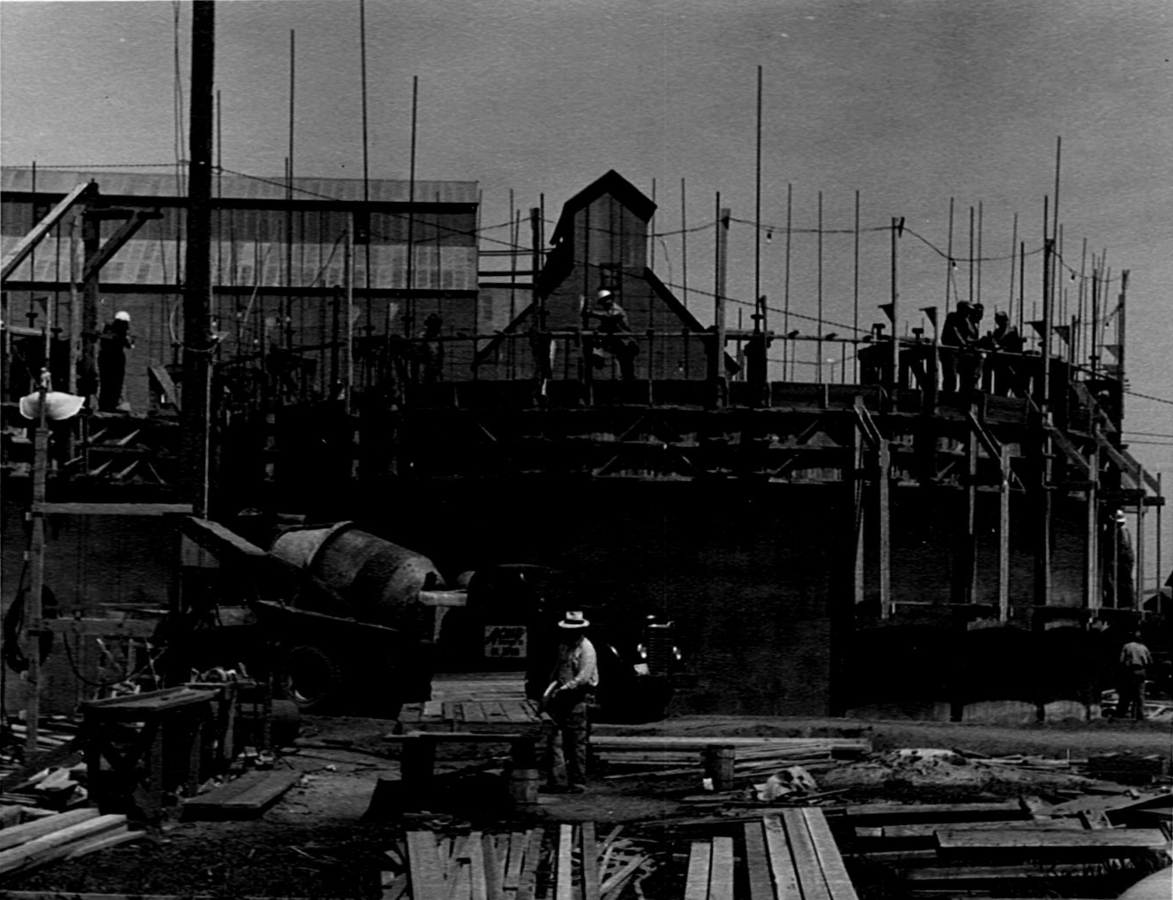 Slip form for north concrete elevators continues to rise. (Photo may be by Otto Mahrt)