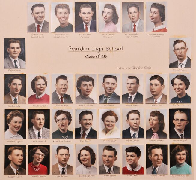 Class composite for 1956. (Photo held by Reardan High School and harvested off of their website).