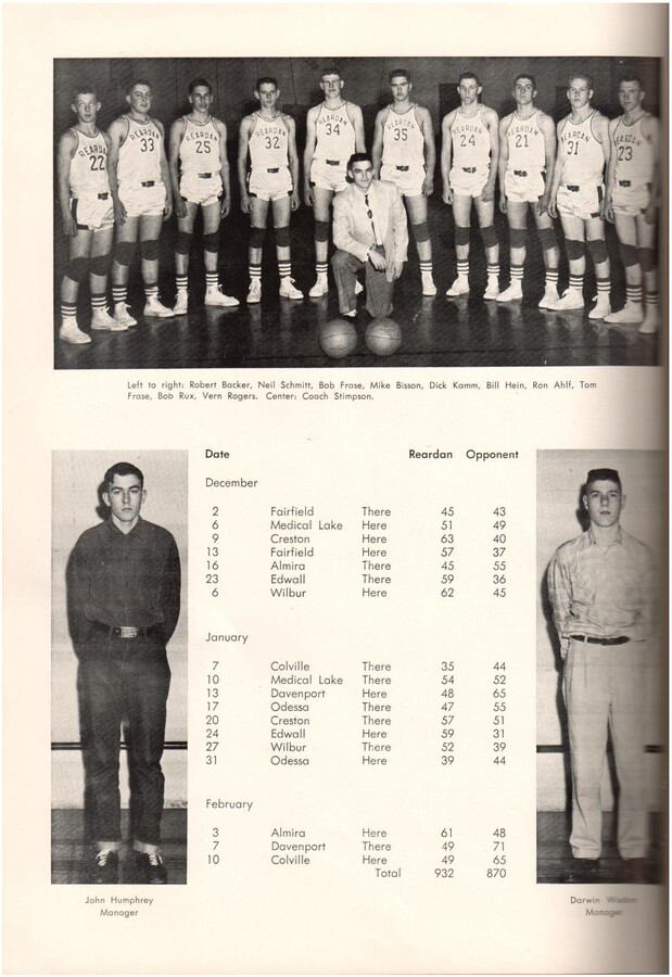 Manager: Darwin Wisdom (from a yearbook held by the Reardan Schools.) |