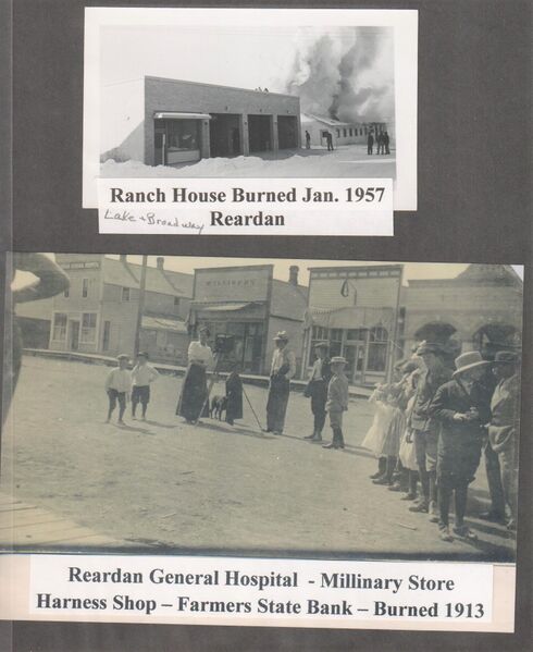 Fire station and burning Ranch House Restaurant 1957. (Held by the Reardan Memorial Library)