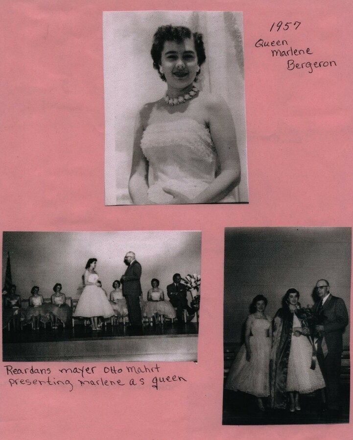 This page is from a scrapbook held by the Reardan Memorial Library about the Reardan Royalty. 1957 royalty 000