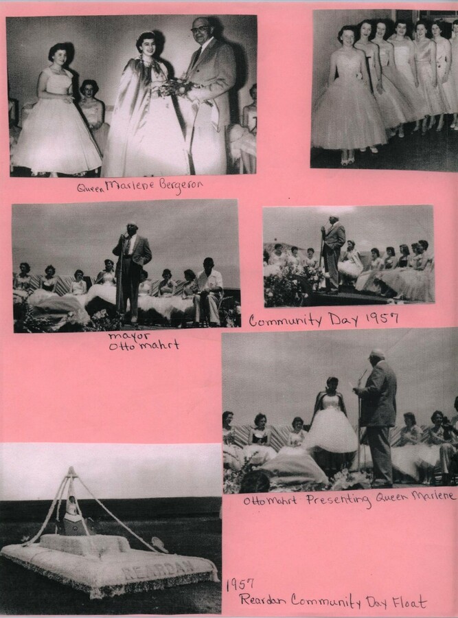 This page is from a scrapbook held by the Reardan Memorial Library about the Reardan Royalty. 1957 royalty 001