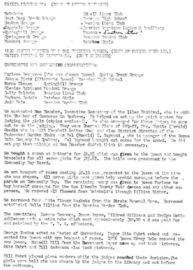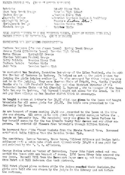 This page is from a scrapbook held by the Reardan Memorial Library about the Reardan Royalty. 1957 royalty 002