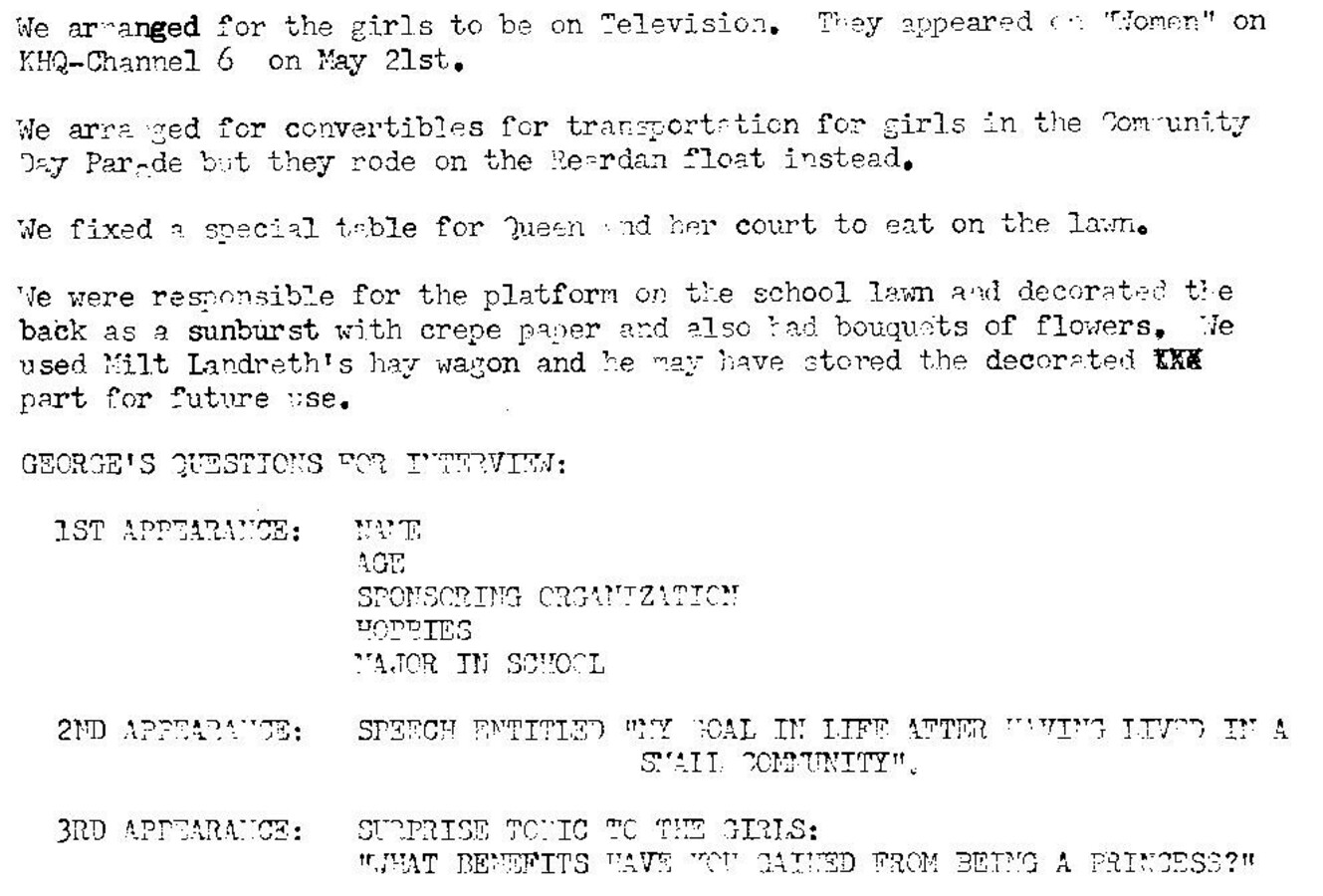 This page is from a scrapbook held by the Reardan Memorial Library about the Reardan Royalty. 1957 royalty 003