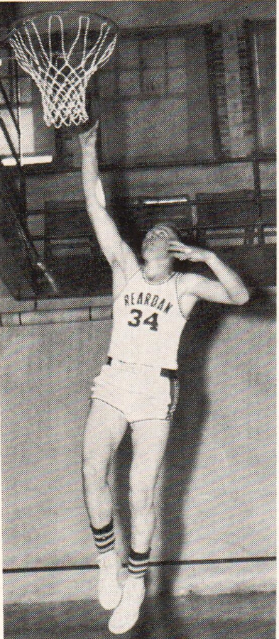 1958 yearbook photo of south wall of gym in 1930 grade school/1953 high school.