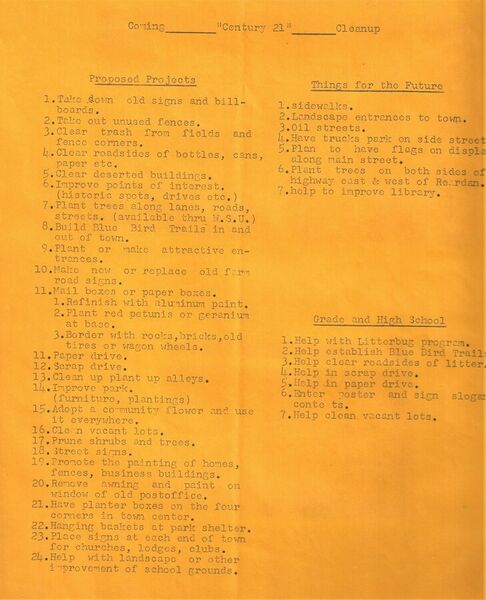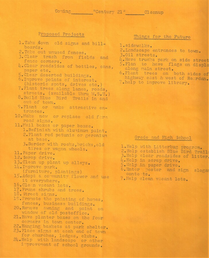 Proposed projects. Part of the Beautification Scrapbooks held by Reardan Memorial Library.