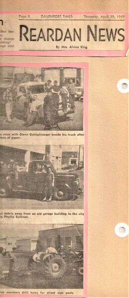 Davenport Times photos on work around town. Part of the Beautification Scrapbooks held by Reardan Memorial Library.