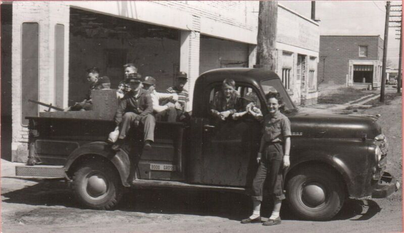 Boy Scout clean up around Lang's garage. Photograph scraped from the Beautification Scrapbooks held by Reardan Memorial Library.