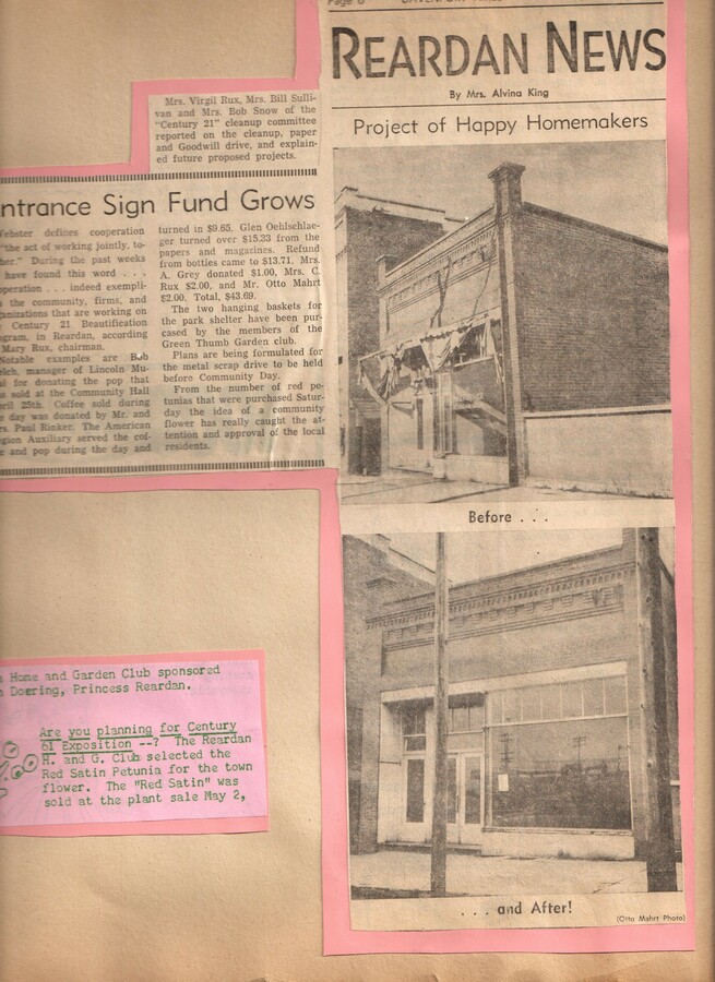 Davenport times story of Happy Homemaker 4-H club project. Part of the Beautification Scrapbooks held by Reardan Memorial Library.