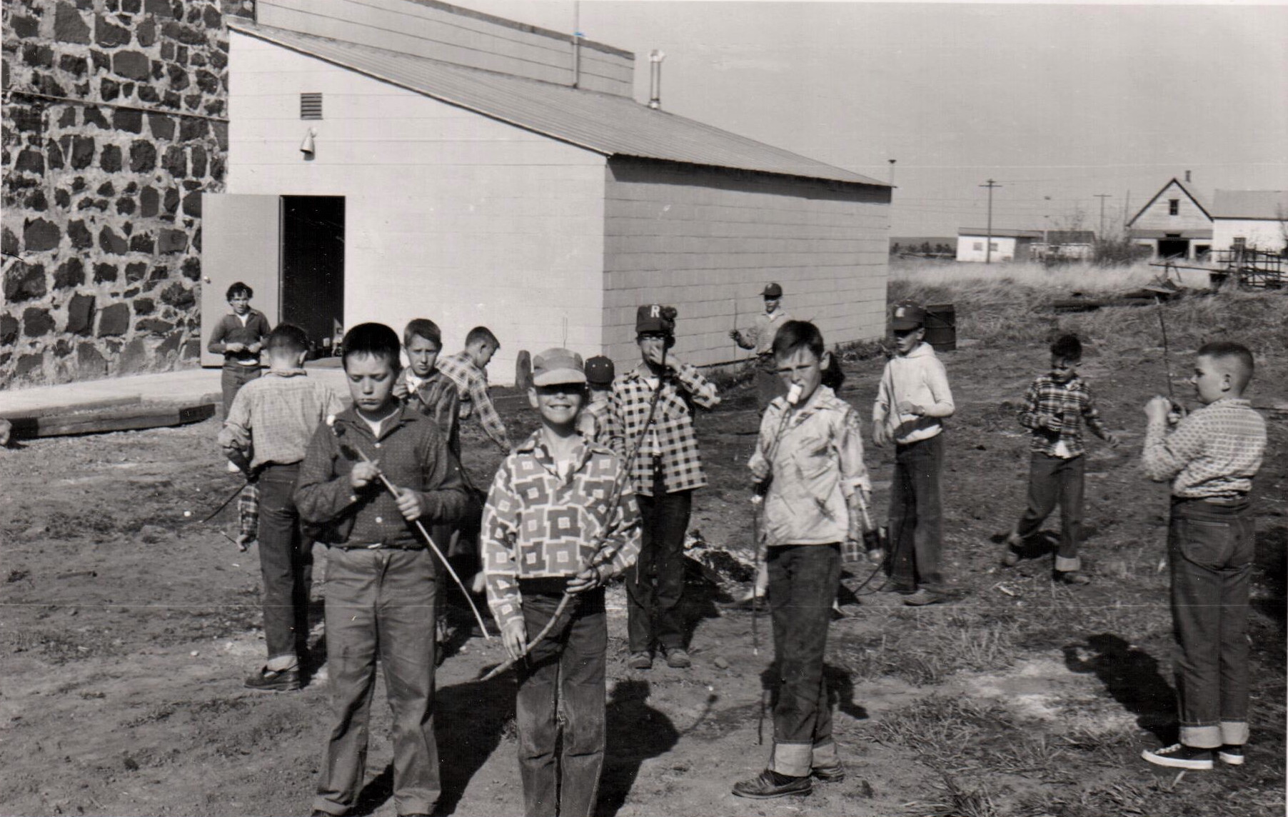 Boy Scouts cleanup Community Hall. Photograph scraped from the Beautification Scrapbooks held by Reardan Memorial Library.