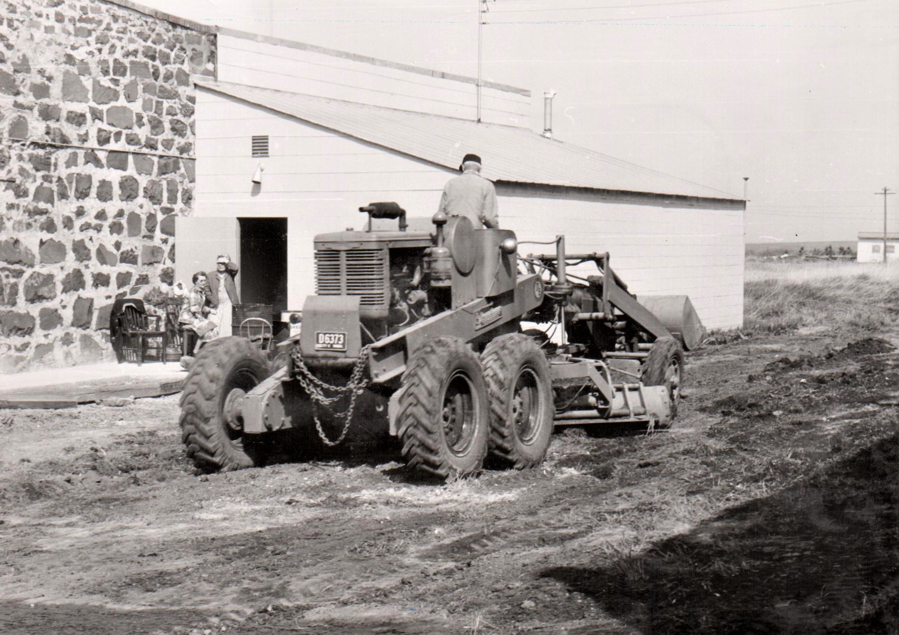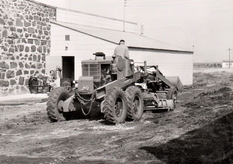 Grading parking lot at Community Hall. Photograph scraped from the Beautification Scrapbooks held by Reardan Memorial Library.