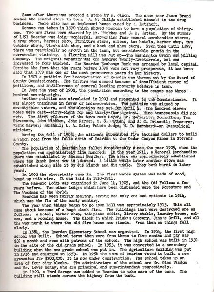 Part of the Early History of Reardan by the 1959 Reardan Washington State History class