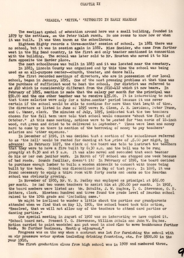 Part of the Early History of Reardan by the 1959 Reardan Washington State History class