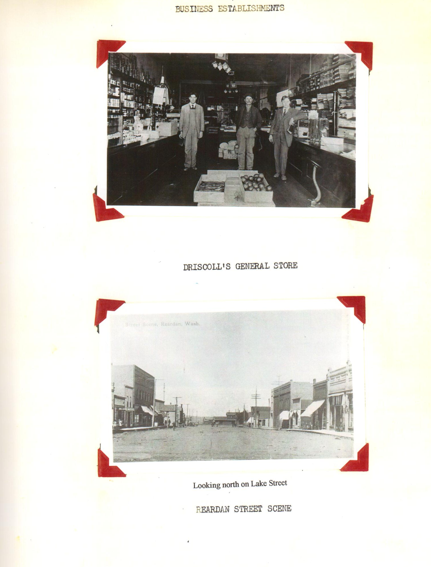Part of the Early History of Reardan by the 1959 Reardan Washington State History class