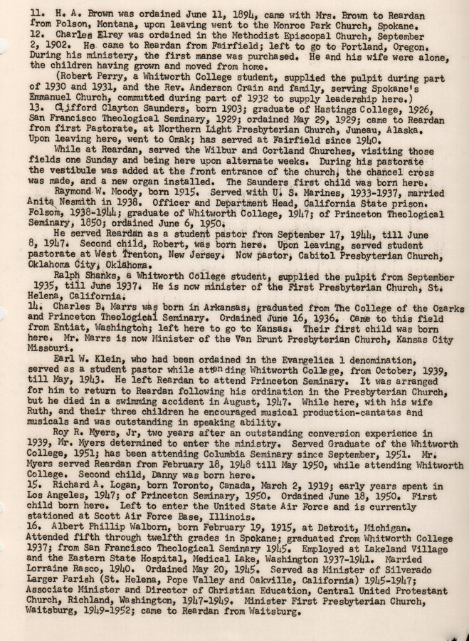 Part of the Early History of Reardan by the 1959 Reardan Washington State History class