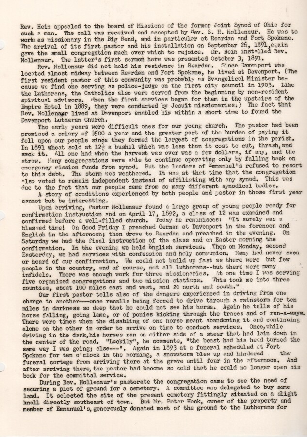 Part of the Early History of Reardan by the 1959 Reardan Washington State History class
