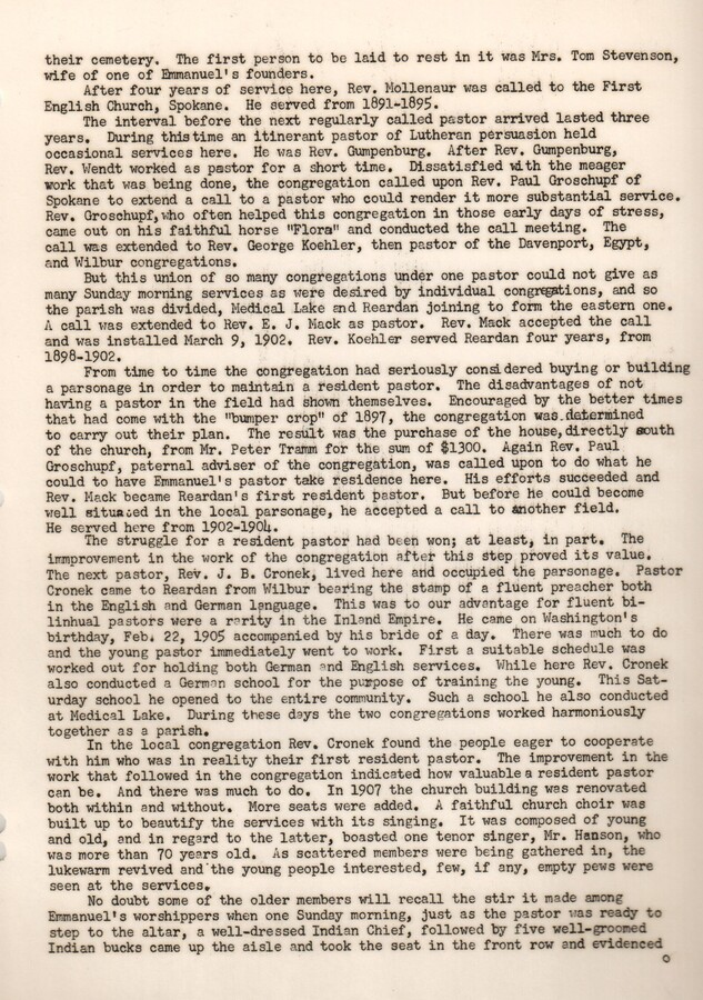 Part of the Early History of Reardan by the 1959 Reardan Washington State History class