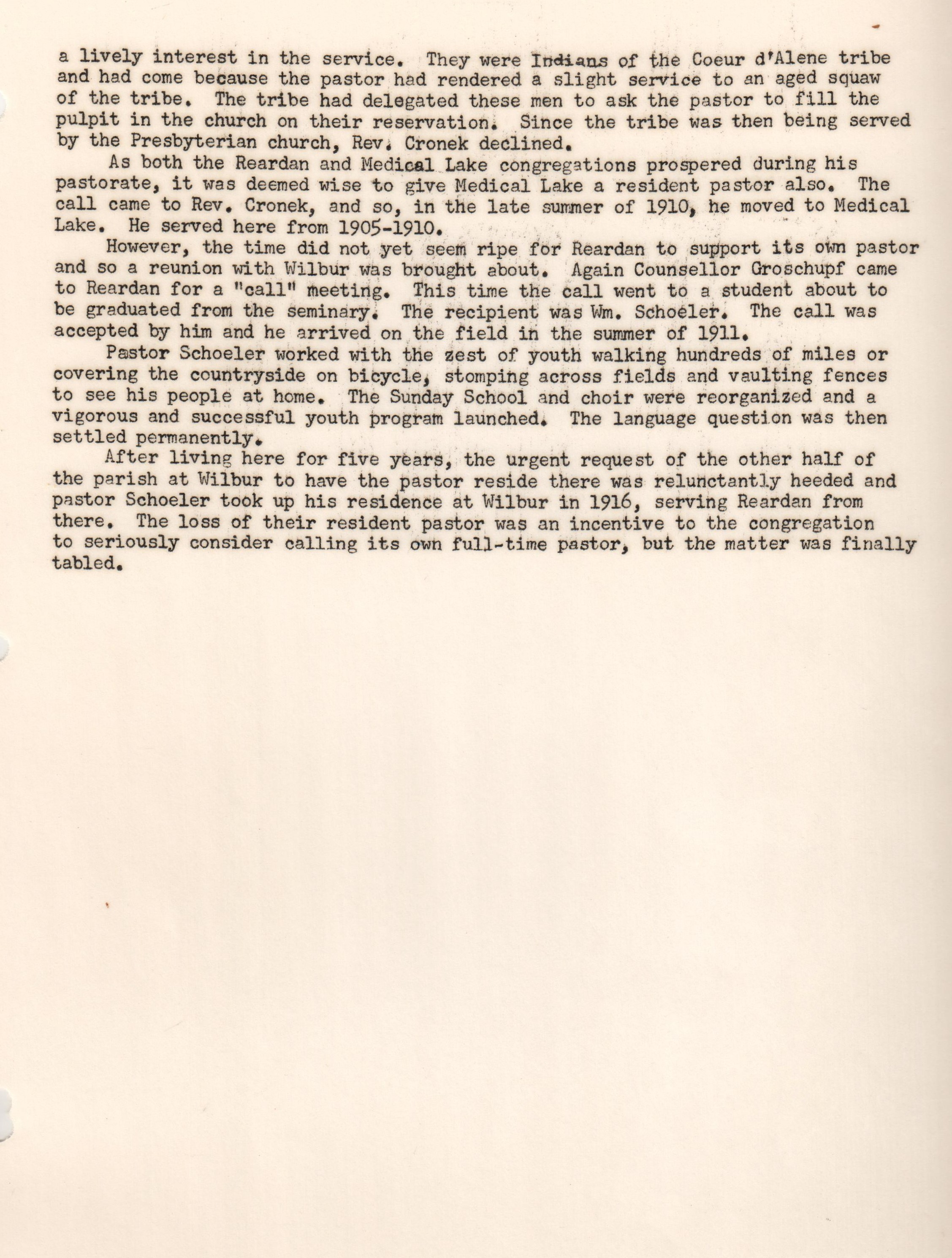 Part of the Early History of Reardan by the 1959 Reardan Washington State History class