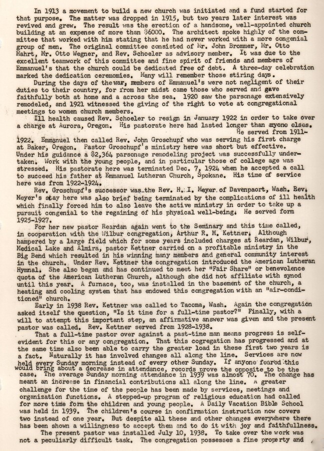 Part of the Early History of Reardan by the 1959 Reardan Washington State History class