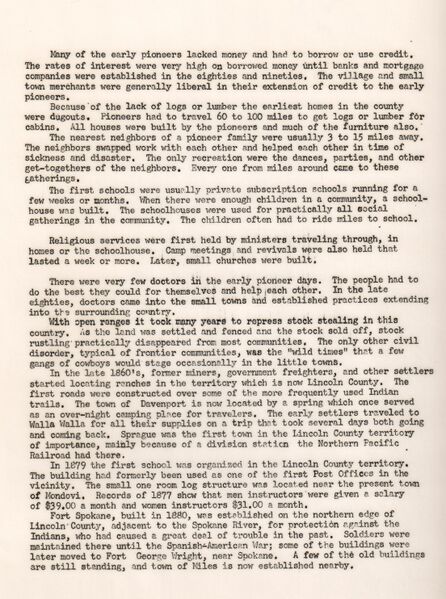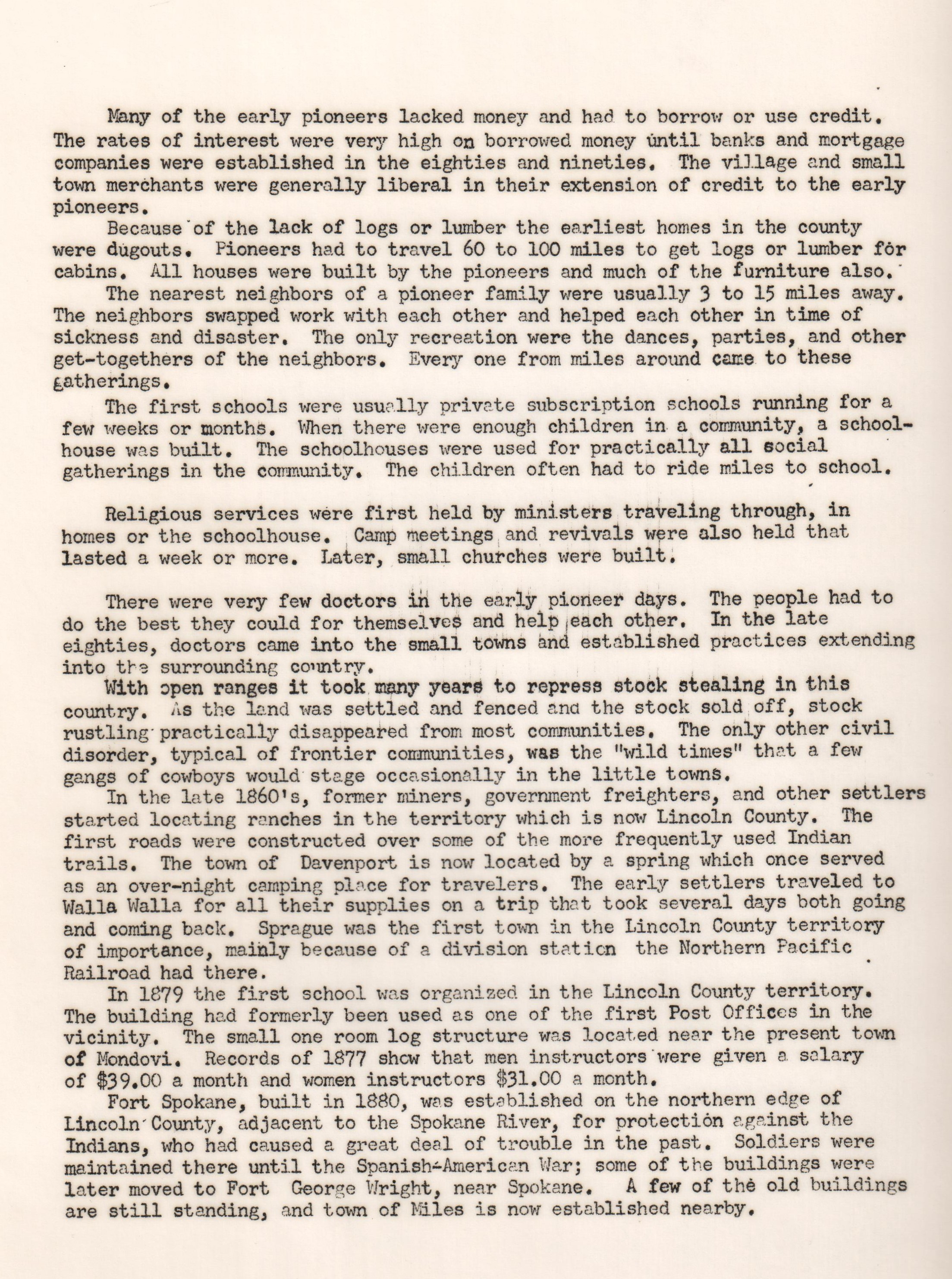 Part of the Early History of Reardan by the 1959 Reardan Washington State History class