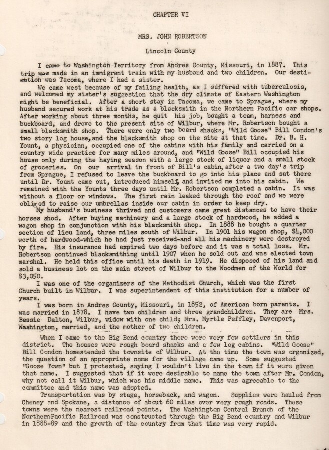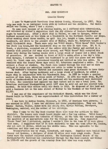 Part of the Early History of Reardan by the 1959 Reardan Washington State History class