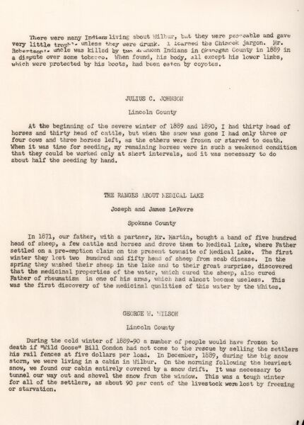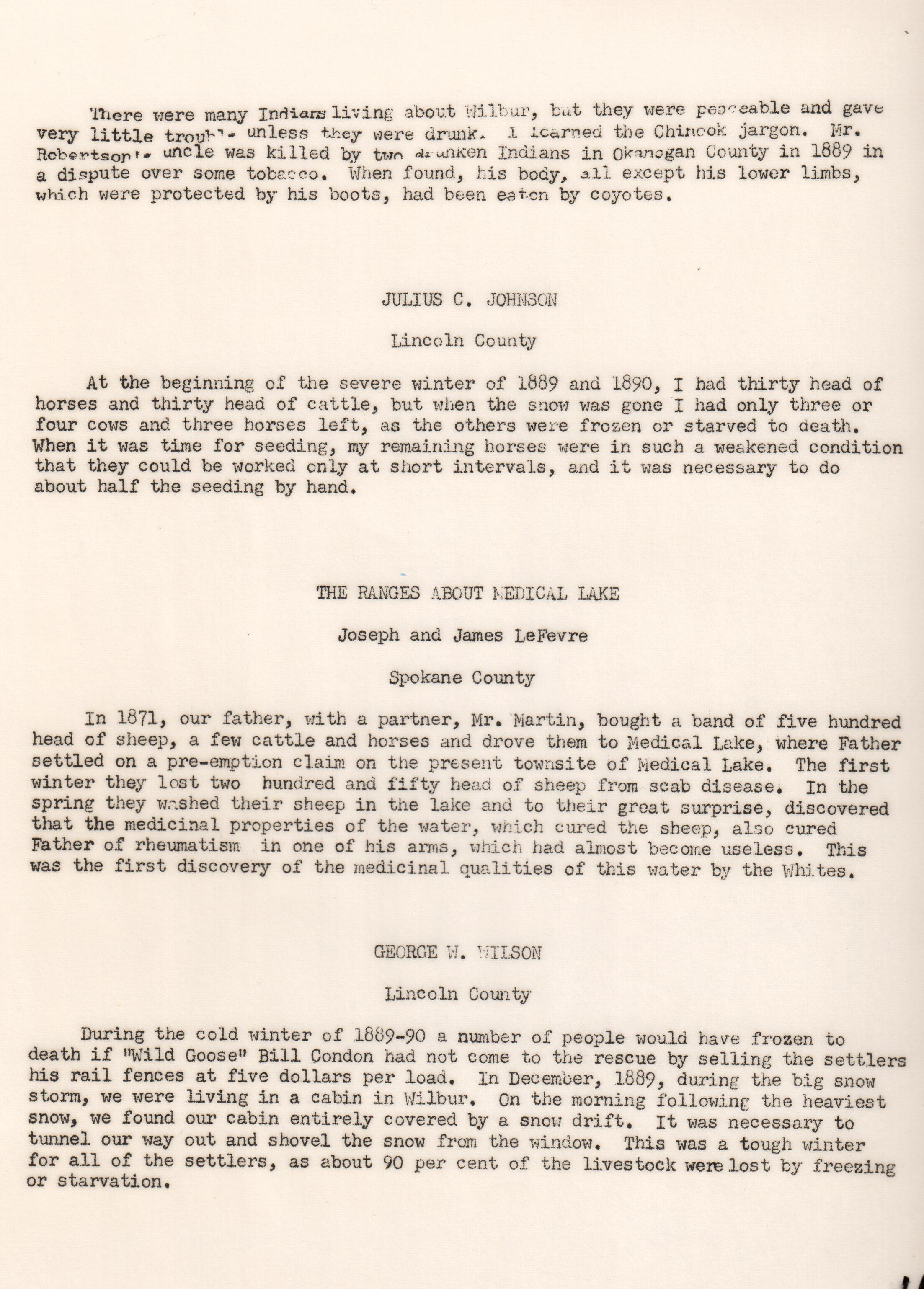 Part of the Early History of Reardan by the 1959 Reardan Washington State History class