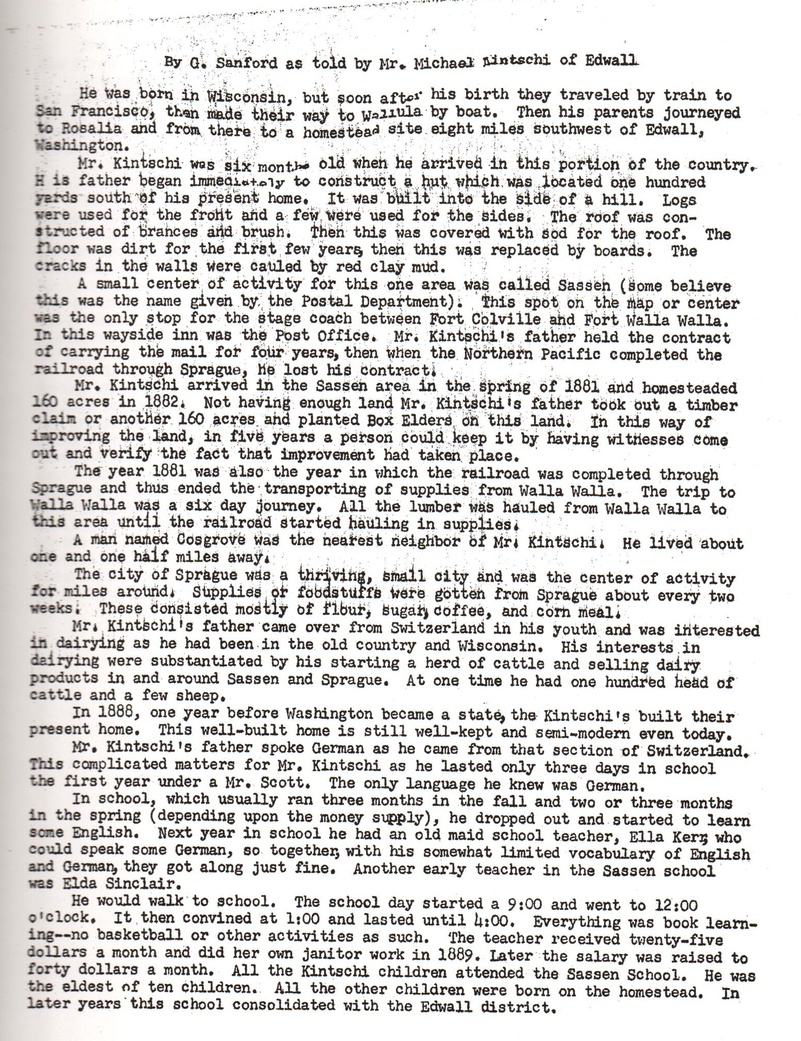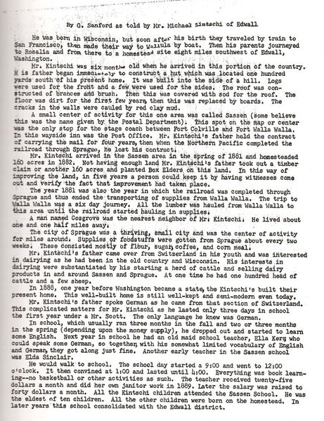 Part of the Early History of Reardan by the 1959 Reardan Washington State History class