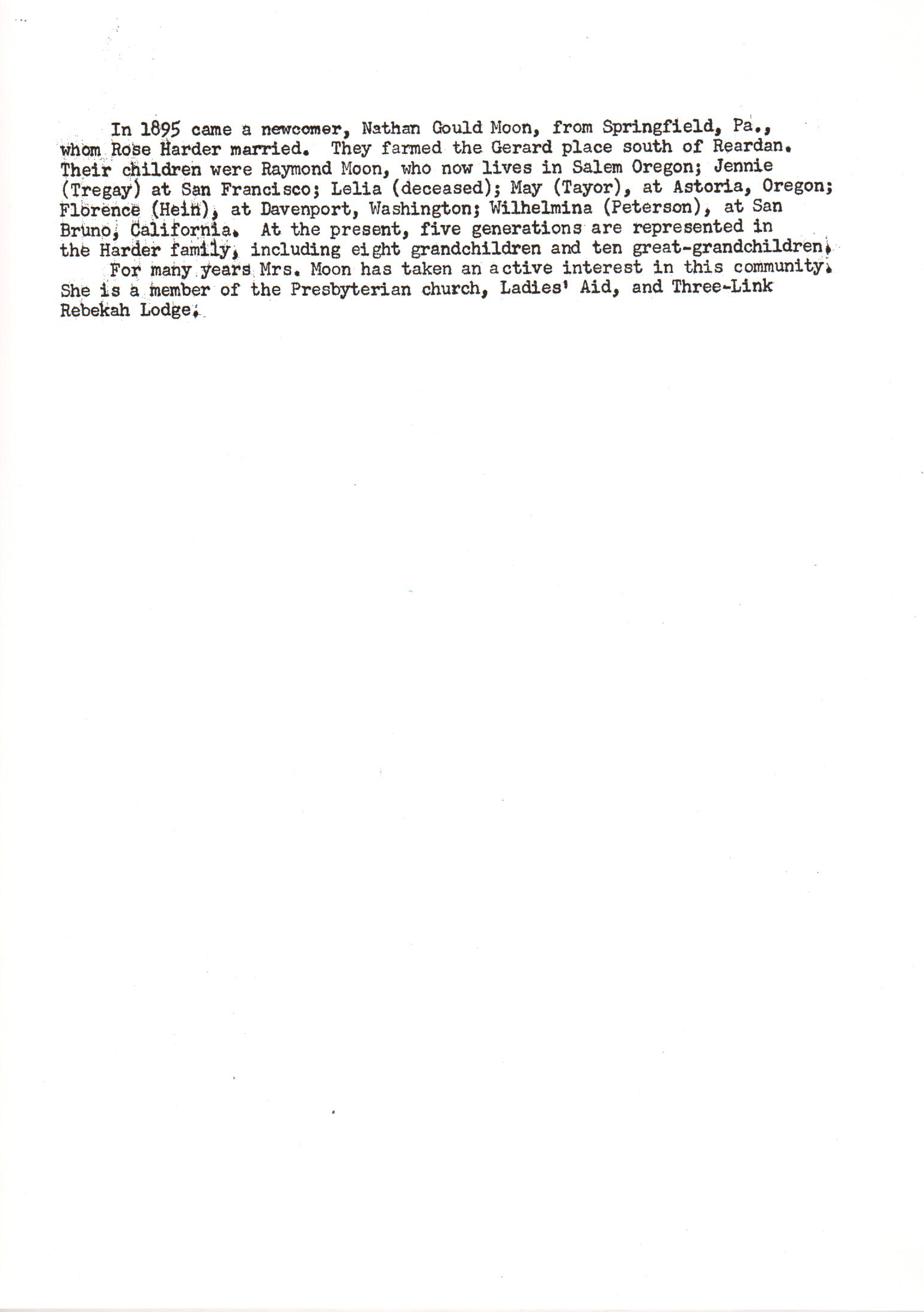 Part of the Early History of Reardan by the 1959 Reardan Washington State History class