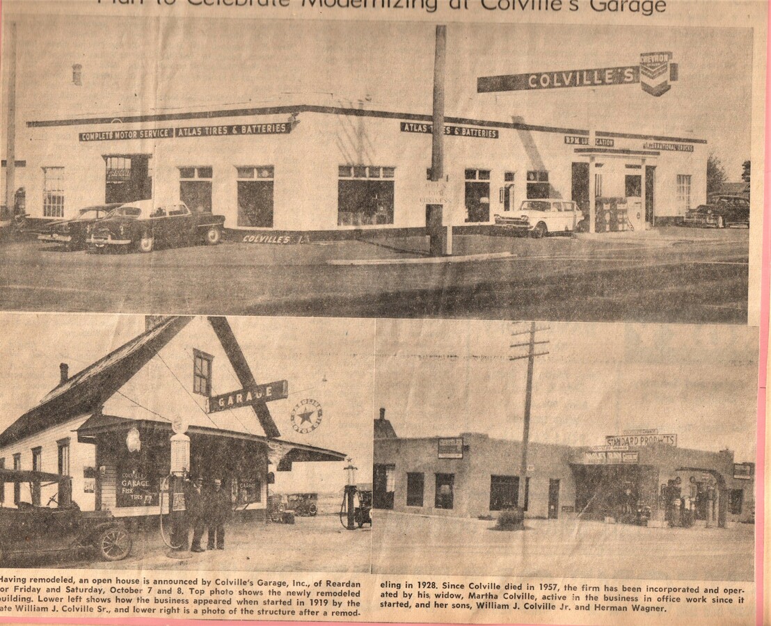 Davenport Times photo spread for Colville's garage. Part of the Beautification Scrapbooks held by the Reardan Memorial Library.