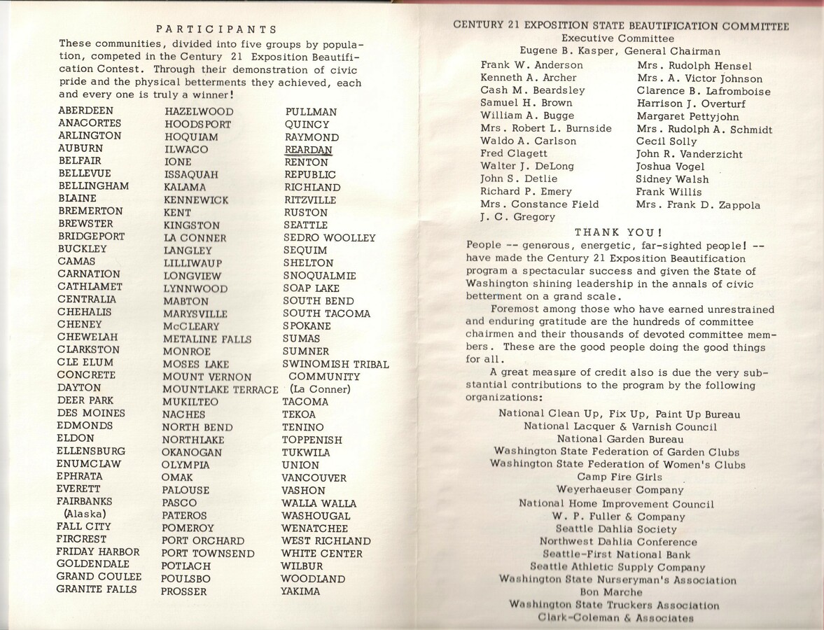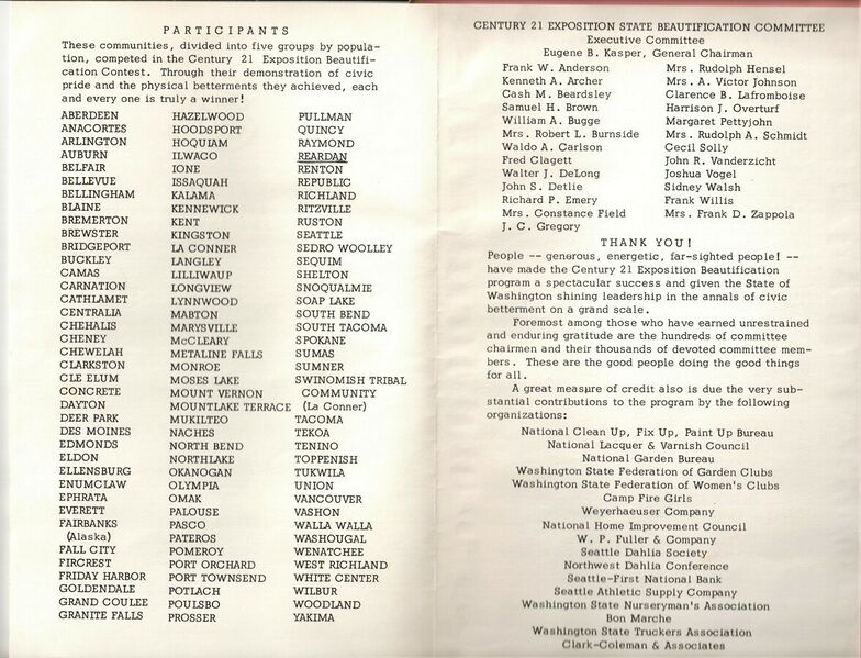 List of communities participating in beautification efforts. Part of the Beautification Scrapbooks held by Reardan Memorial Library.