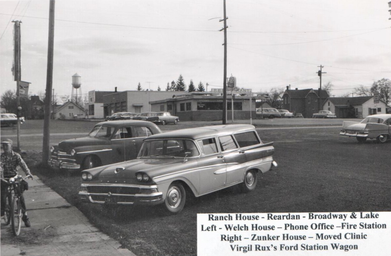 Fire station, Ranch House, Zunker house, and hospital taken around 1960. (Held by the Reardan Memorial Library)