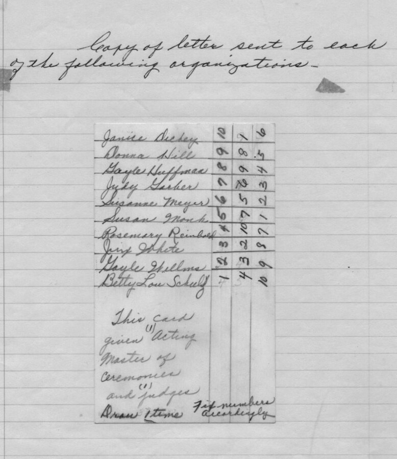 This page is from a scrapbook held by the Reardan Memorial Library about the Reardan Royalty. 1960 royalty 011
