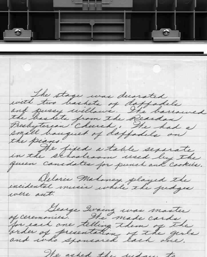 This page is from a scrapbook held by the Reardan Memorial Library about the Reardan Royalty. 1960 royalty 017