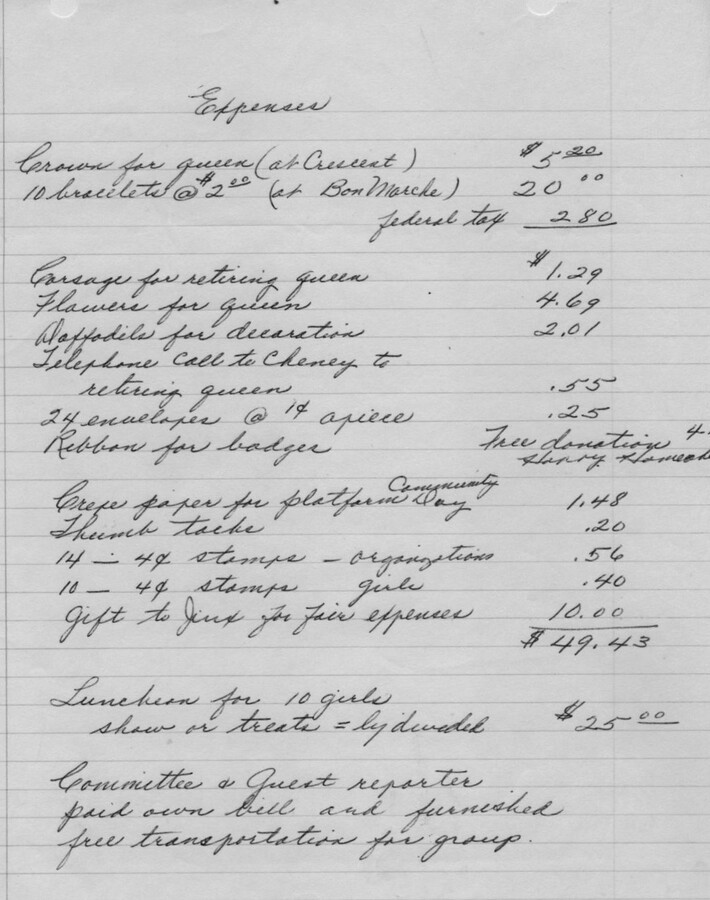 This page is from a scrapbook held by the Reardan Memorial Library about the Reardan Royalty. 1960 royalty 020