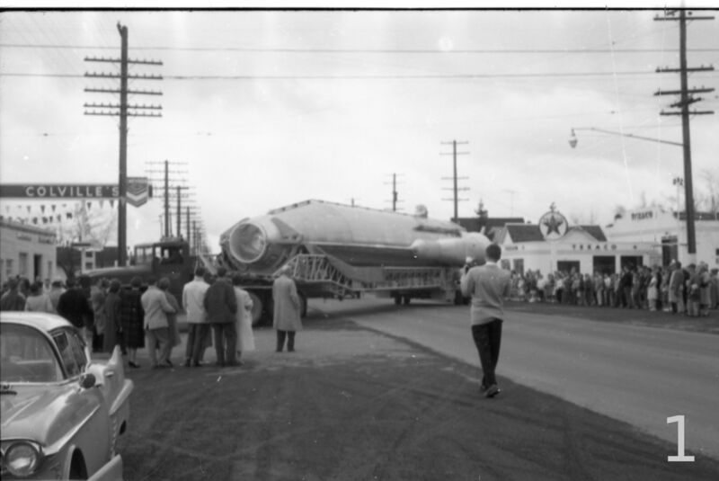 Atlas missile at Broadway Ave (US2) and Aspen Street (WA231) in March 1961. (Dan Plaster photo)