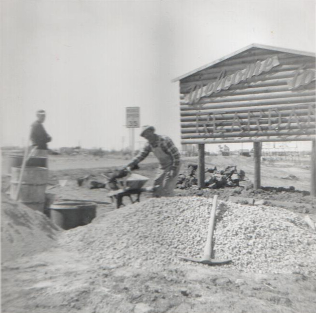 Welcome to Reardan sign base. Photograph scraped from the Beautification Scrapbooks held by Reardan Memorial Library.