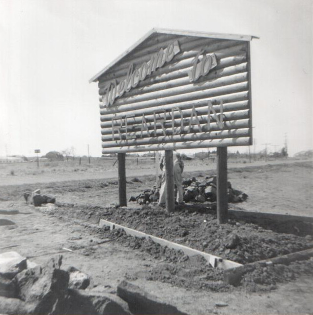 Welcome to Reardan sign base. Photograph scraped from the Beautification Scrapbooks held by Reardan Memorial Library.