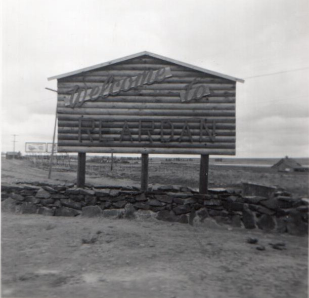 Welcome to Reardan sign base. Photograph scraped from the Beautification Scrapbooks held by Reardan Memorial Library.