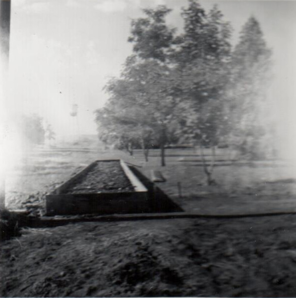 Prepping concrete forms for park sidewalk. Photograph scraped from the Beautification Scrapbooks held by Reardan Memorial Library.