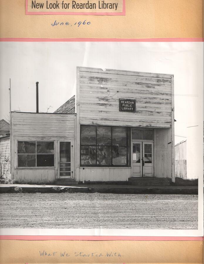 Photo of before view of the Reardan library. Part of the Beautification Scrapbooks held by the Reardan Memorial Library.
