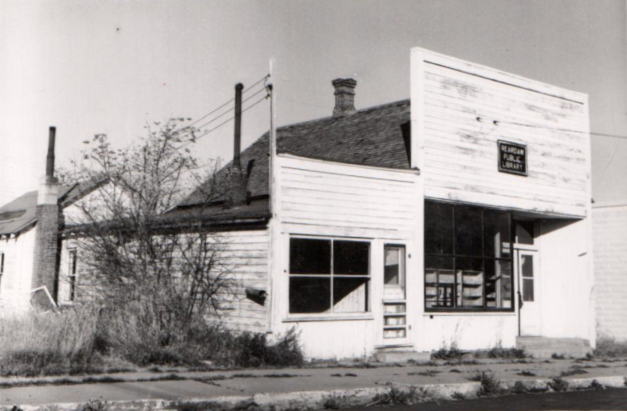 Library before remodeling from left side front. Photograph scraped from the Beautification Scrapbooks held by Reardan Memorial Library.