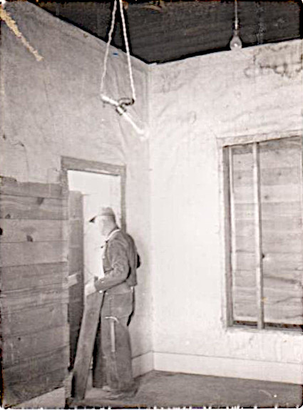 Library construction of small back room with hanging lights. Photograph scraped from the Beautification Scrapbooks held by Reardan Memorial Library.