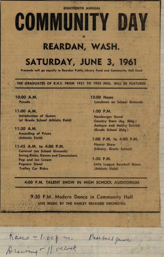 This page is from a scrapbook held by the Reardan Memorial Library about the Reardan Mule Days. 002