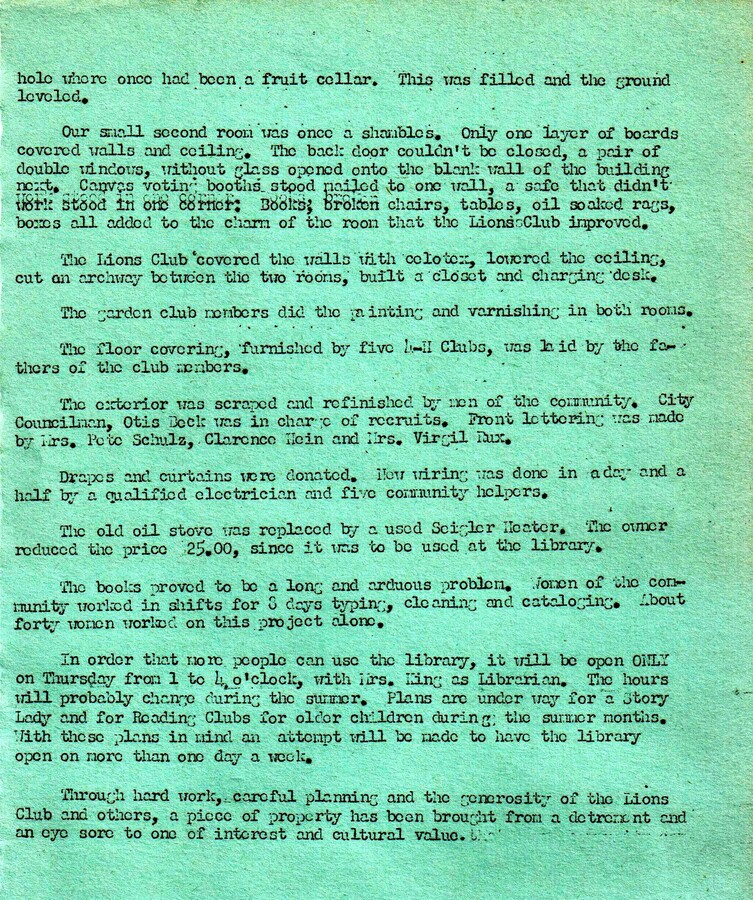 from Memorial Library scrapbook held by the Reardan Memorial Library.
