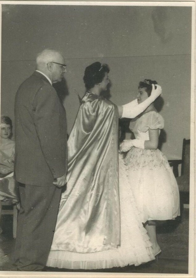 This page is from a scrapbook held by the Reardan Memorial Library about the Reardan Royalty. 1961 royalty 004