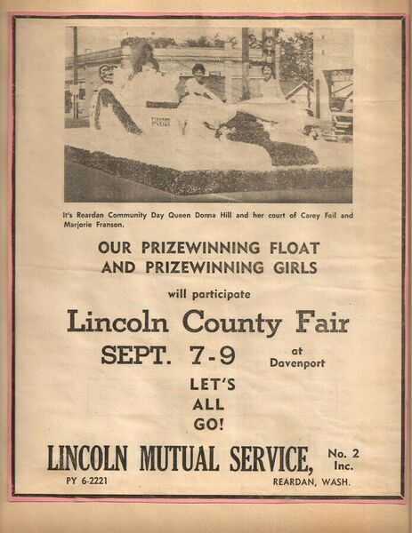 This page is from a scrapbook held by the Reardan Memorial Library about the Reardan Royalty. 1961 royalty 012